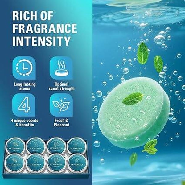 - Four Natural Aromatherapy Blends: Contains four fragrances: Cedarwood (promoting relaxation and grounding), Sandalwood (for calm and meditation), Eucalyptus (invigorating and respiratory support), Peppermint (cooling and mental clarity). Each scent, crafted with 6% essential oil concentration, is meticulously blended to transform your bath into an immersive aromatic experience, offering refreshing aromas that soothe the mind and relieve stress, creating an at-home spa retreat.